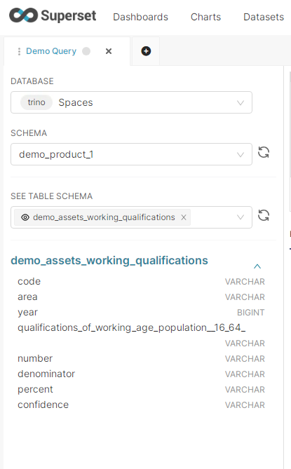 Trino | Fast Query performance, exploration and analytics (~ 10x faster than HIVE) Querying Remote Data Assets made added to a Space. | |